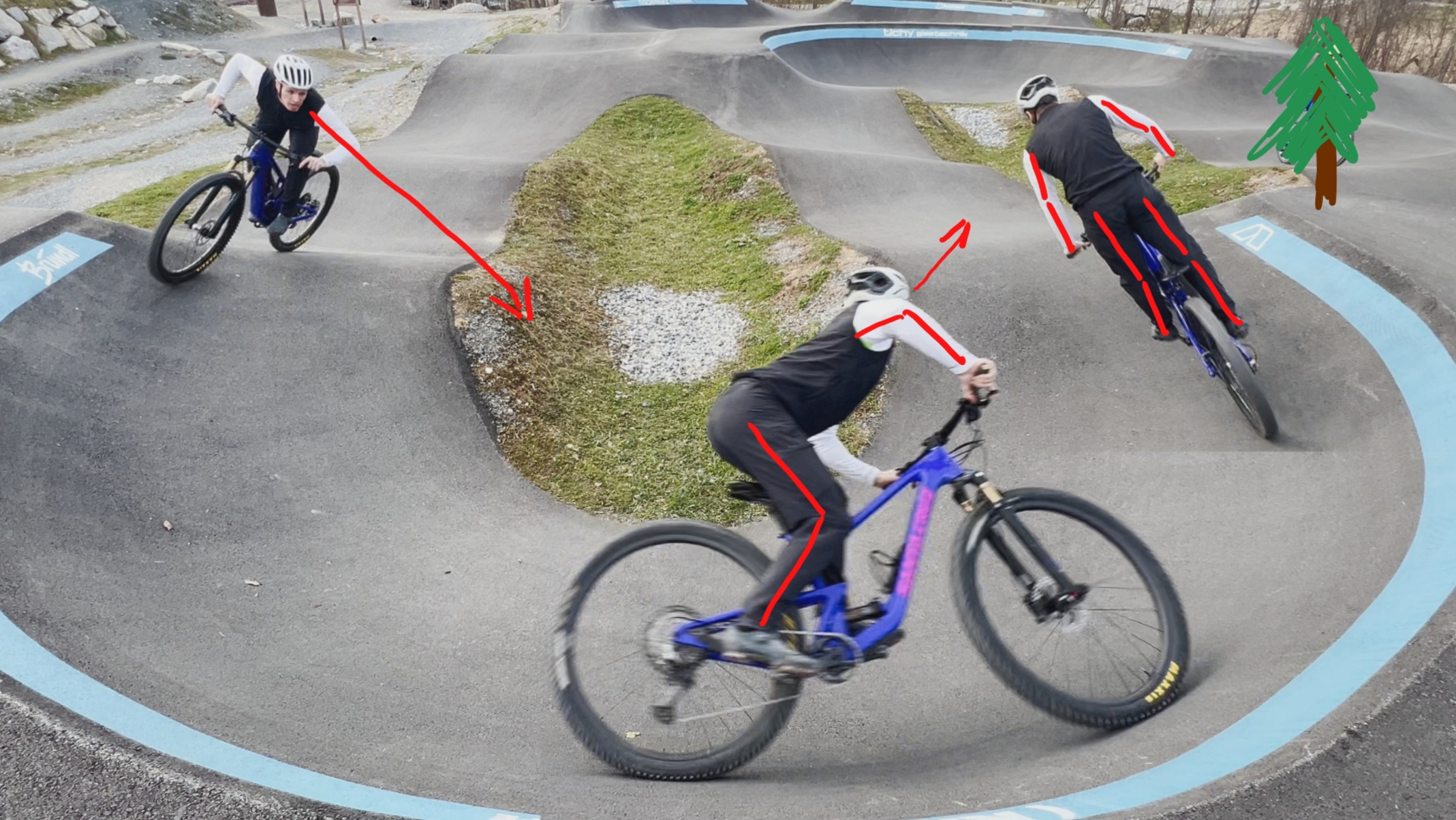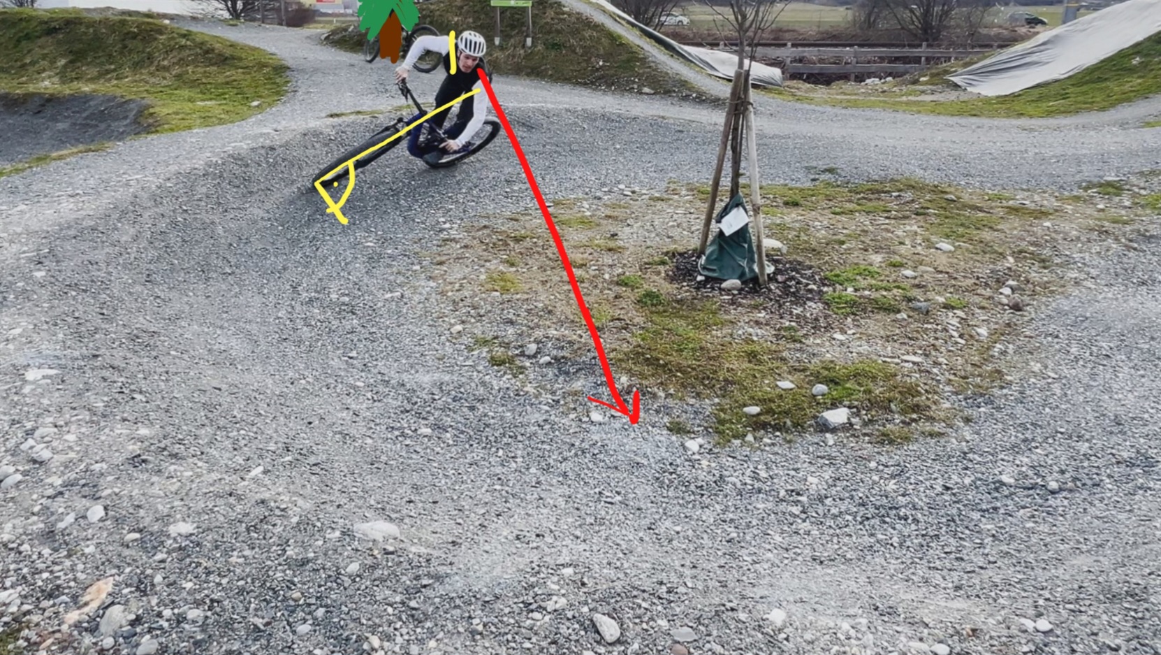 Bike in die Kurve drücken (Innenhand fast gestreckt, Außenhand stark gebeugt)