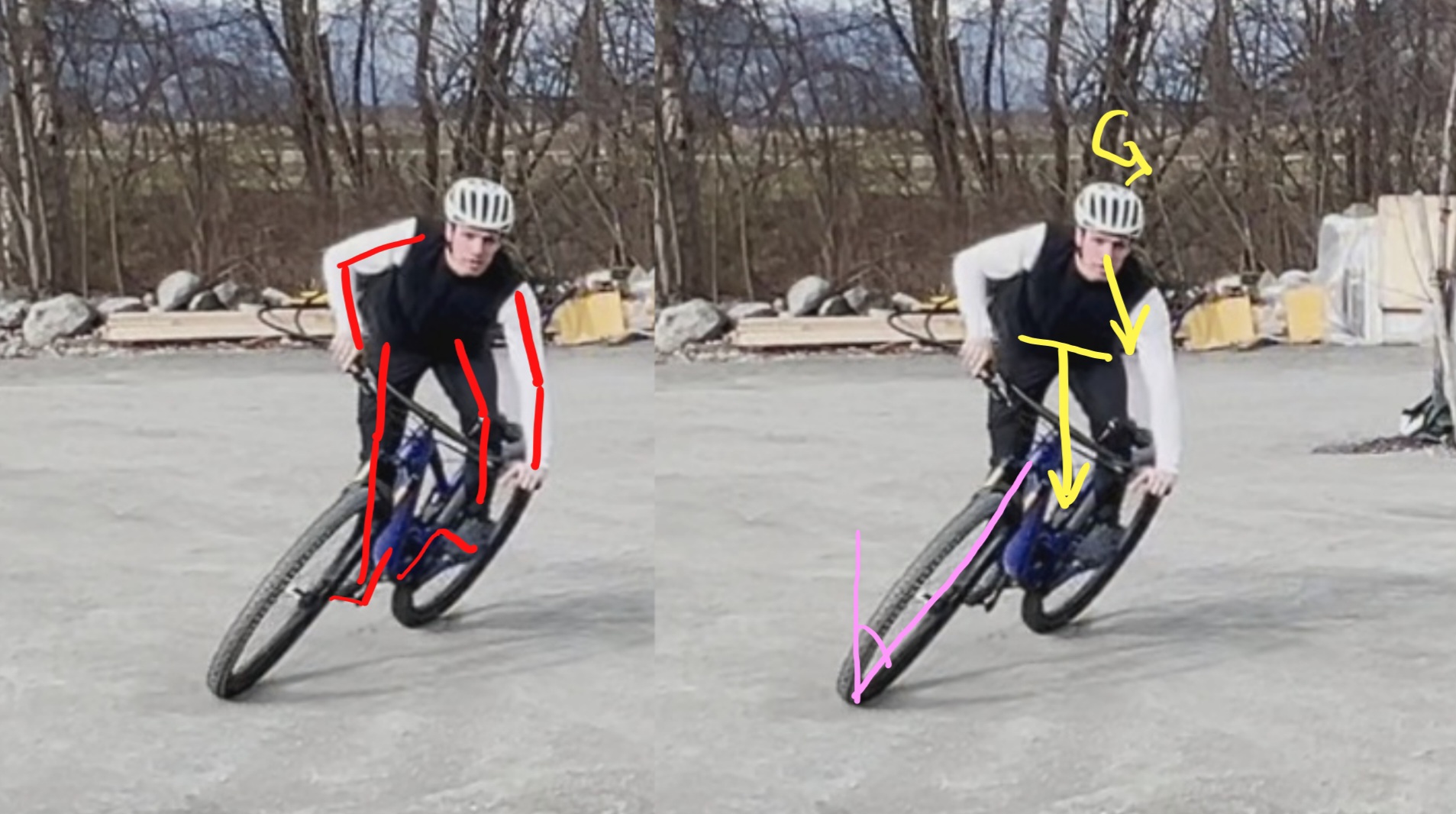 Äußere Radseite belasten (äußeres Pedal und Lenkerende)