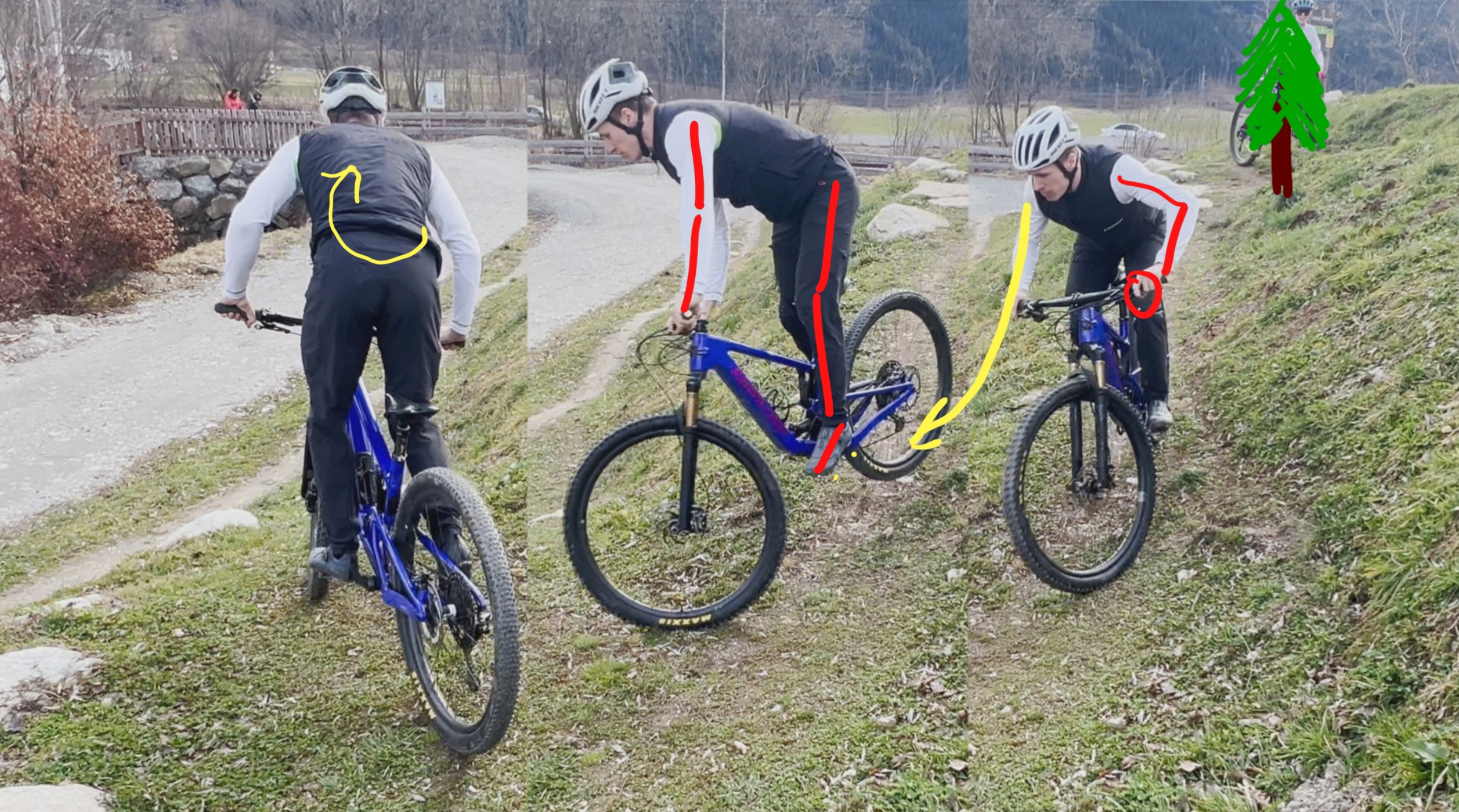 Körperspannung in der Rotation beibehalten, der Kopf dreht die Schultern, diese den Lenker → VR bleibt immer in Fahrtrichtung ausgerichtet.